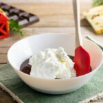 - Mettere a bagno in acqua molto fredda la colla di pesce, per circa 5 minuti. Portare a bollore il latte, estrarre la colla di pesce dall’acqua strizzandola bene e scioglierla nel latte bollente. Versare subito il latte caldo, in cui sarà stata sciolta la gelatina, in una ciotola con il cioccolato tritato finemente e mescolare con una frusta fino a far sciogliere il tutto. In una ciotola a parte montare la panna e unirla al composto di cioccolato, quando sarà tiepido, mescolando delicatamente con un lecca pentole, dall’alto verso il basso.